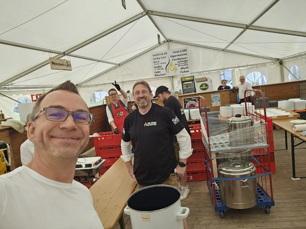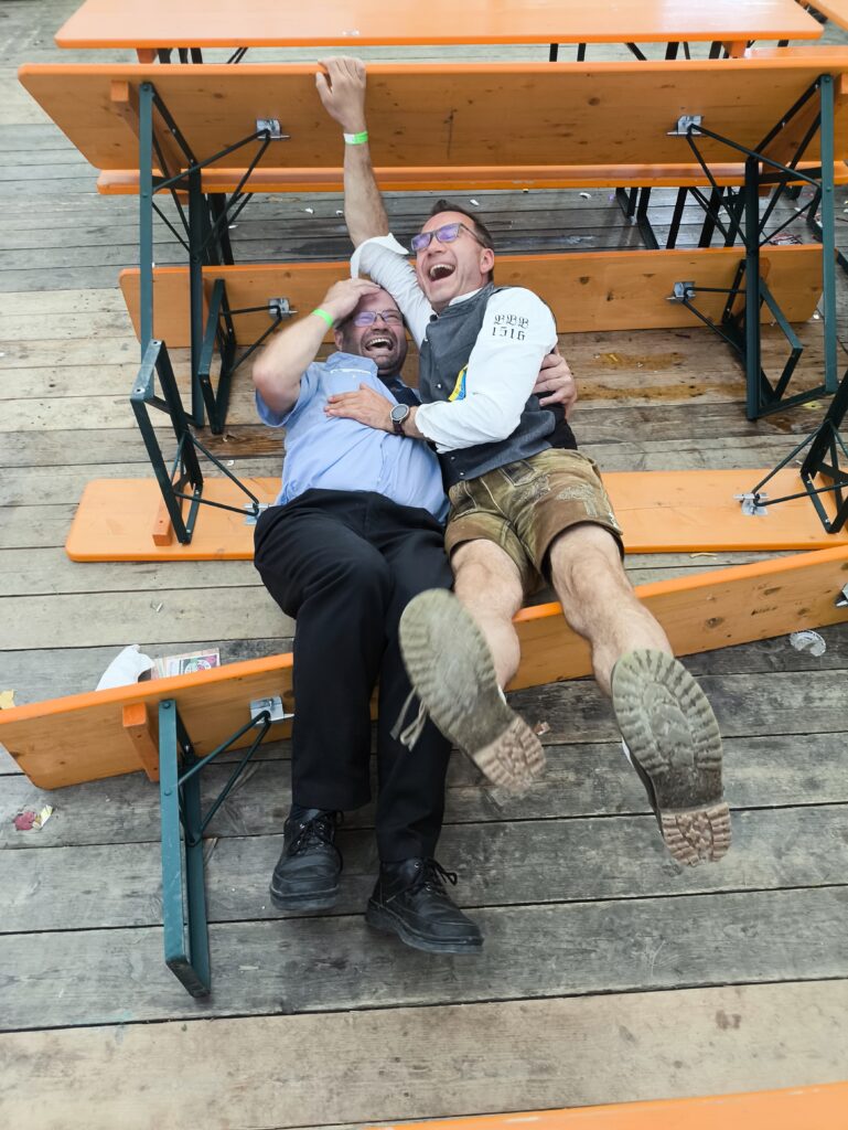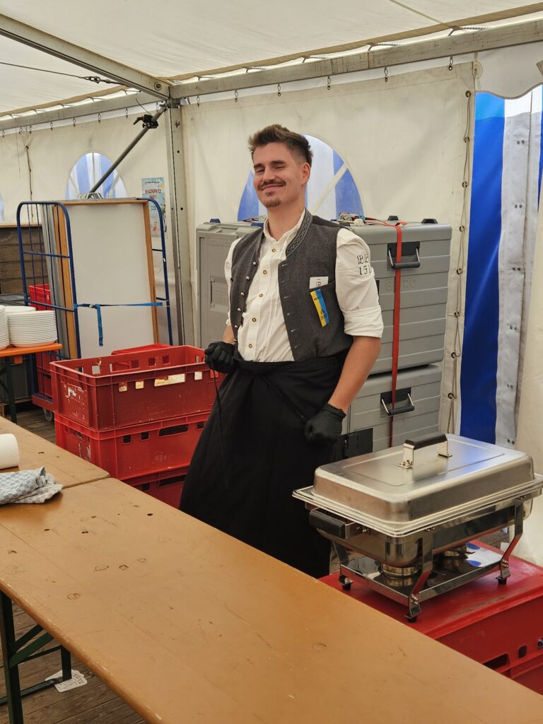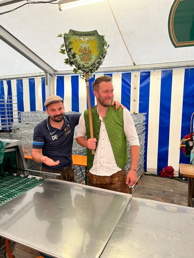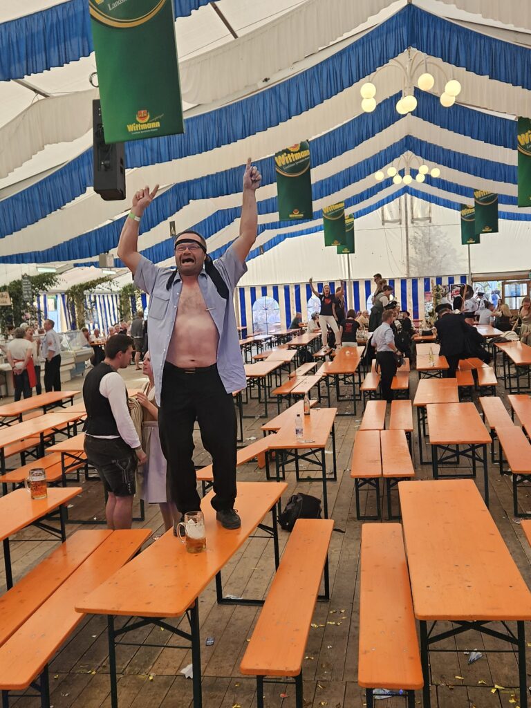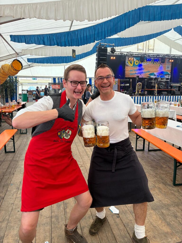 Im Anschluss an den Gottesdienst ging es geschlossen zurück ins Festzelt, wo bei zünftiger Blasmusik, Bier und bayerischen Schmankerln ausgelassen gefeiert wurde. In geselliger Runde pflegte unsere Abordnung die Kameradschaft mit den Feuerwehrlern und den anderen anwesenden Vereinen, ganz im Sinne des Vereinszwecks, die bayerische Bier- und Festkultur zu pflegen.