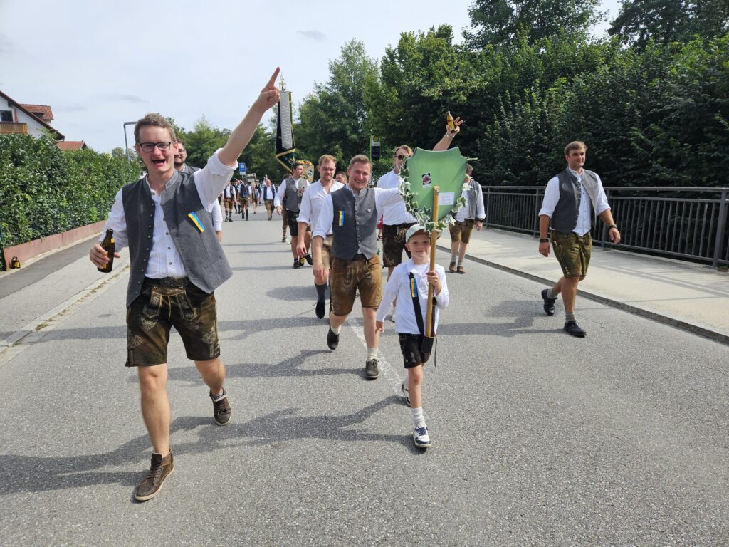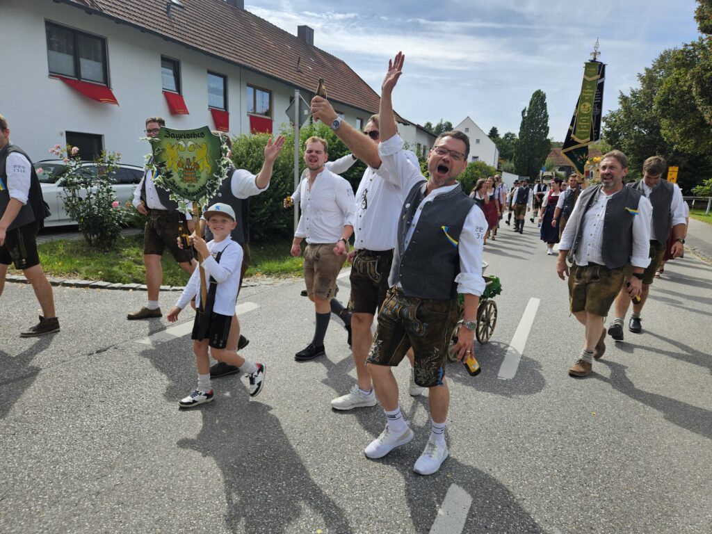 Nach dem Eintreffen der Vereine versammelte sich der Kirchenzug, um gemeinsam zur feierlichen Fahnenweihe zu marschieren. Während des Festgottesdienstes wurde die neue Fahne gesegnet und mit würdig gehaltenen Ansprachen an die Bedeutung von Zusammenhalt, Hilfsbereitschaft und Tradition erinnert. Die Vertreter des BBB 1516 reihten sich inmitten zahlreicher Orts- und Patenvereine ein und trugen so zu einem eindrucksvollen Gesamtbild bei.